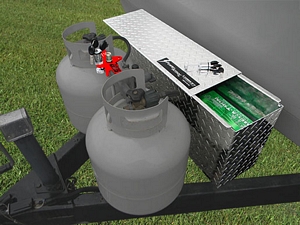 The PowerArmor is a high quality locking aluminum battery box. Developed specifically to prevent increasingly common and expensive battery theft and related damage to wiring from 'cut and run' thefts. Engineered to hold and protect two Group 24 or Group 27 12 volt batteries or two 6 volt T105 or SC2 Golf cart batteries. The design utilizes a unique lockable slide top (lock included) for quick easy access. It can also be used for safe lockable storage when not used for batteries. By using it with batteries, you will have extra secure battery power for your RV, truck camper, truck, van etc. There is an access hole in the back of the PowerArmor for the electrical wires to pass through the side wall of the box so it can easily be wired into your electrical circuit and incorporates a special design for proper battery ventilation. The PowerArmor DH comes with Torklift International's Legendary Lifetime Warranty and is proudly made in the USA.