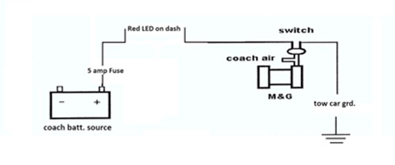 12- Test light by applying brake on coach with both air line and electrical connect between towed and coach. If equipped with Breakaway system, press coach brake fully to charge air tank on towed fully for 30 sec. and let off brake, Go back to towed vehicle and pull breakaway cable to remove plug from switch, Red led should illuminate and remain on till you replace breakaway plug in switch.