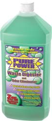Pure Power Waste Digesting Toilet Treatment - Organic - 32oz.This Black Water Holding Tank Treatment by Pure Power is a super concentrated bacteriological formula - use only 2 oz. per treatment in both black and gray tanks! Let the natural efficiency of bacteria & enzymes keep your holding tanks clean and odor-free. Put the power of this microbial formula to work for you and see what a difference it makes. This chemical-free solution is accepted at all campgrounds, RV parks, and RV/Marine dump stations. It is safe to use in all septic systems, will not harm children or pets, and has a Fresh Wintergreen fragrance.