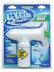 Regardless of wind direction or speed, the Cyclone works quietly and effectively 24 hours, 7 days a week to rid your RV of foul holding tank odors. In certain wind conditions, the factory cap actually forces wind down the stack, pushing holding tank fumes into the RV. The Cyclone always draws gases out of the tank. Instead of masking the odor problem with chemicals and deodorizers, why not simply eliminate it?