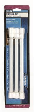 Keep your cans and bottles in your refrigerator and cabinets secure while traveling. Bars are spring-loaded and have rubber tips. Extend from 10" to 17". Single: 3 per pack. Double: 1 per pack.