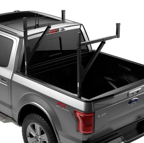 Adjustable, multi-position ladder and lumber rack that carries up to 250lbs* and easily installs to most pick-ups.