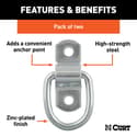 1" X 1-1/4" SURFACE-MOUNTED TIE-DOWN D-RINGS (1,200 LBS, CLEAR ZINC, 2-PACK) - 83731