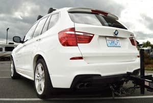 The EcoHitch stealth hitch for the 2013-2017 BMW X3 is designed to be completely concealed and has a removable receiver when not in use so you don't have to see a crosstube underneath your vehicle. Rated for 525 pounds tongue weight at the trailer ball, and 3,500 pounds towing weight, this X3 trailer hitch helps you command the road with the confidence that comes with driving BMW.