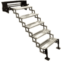 GLOWSTEP ranges from 2 to 6 steps which feature adjustable feet that offer 7 inches of precision for all terrain suitability. There's no drawbridge steps that fold into the recreational vehicle but instead fit in the outer compartment making clean-up a cinch.