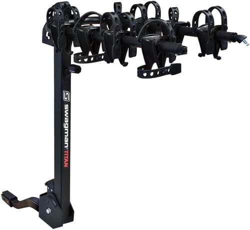 The Swagman TRAILHEAD 3 is a hitch mount hanging bike rack which carries up to three bikes. A lightweight rack designed for occasional use, the TRAILHEAD 3 is ideal for family vacations. Easy to use and load, it fits bikes of most sizes and styles. Triangle bike cradles and rubber straps securely hold your bikes and eliminate most of the front to back bike sway found on other hanging style racks and its two arms fold down for easy storage.