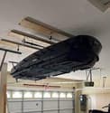 The perfect way to store a roofbox. Works just as perfectly for kayaks and surfboards.