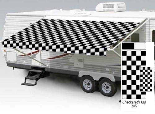 19' Universal Awning Replacement Fabric - Checkered Flag with Weatherguard