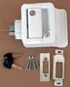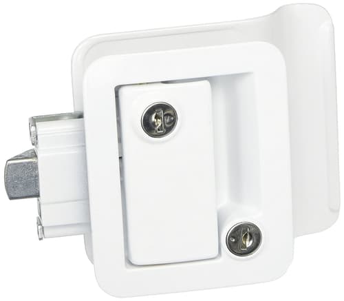 This "Trimark style" door lock in white is made by Fastec Industrial Corp. and has a built-in deadbolt and provides that extra sense of security for your trailer.