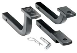 For use on Class II receivers. 3,500 lb. gross trailer weight, 300 lb. tongue weight. 1-1/4" square shank, 3/4" ball hole. Includes pin and clip. Displayed as lenght x rise x drop.