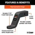 • Fits trailer hitches with a 2-1/2" x 2-1/2" receiver tube opening
