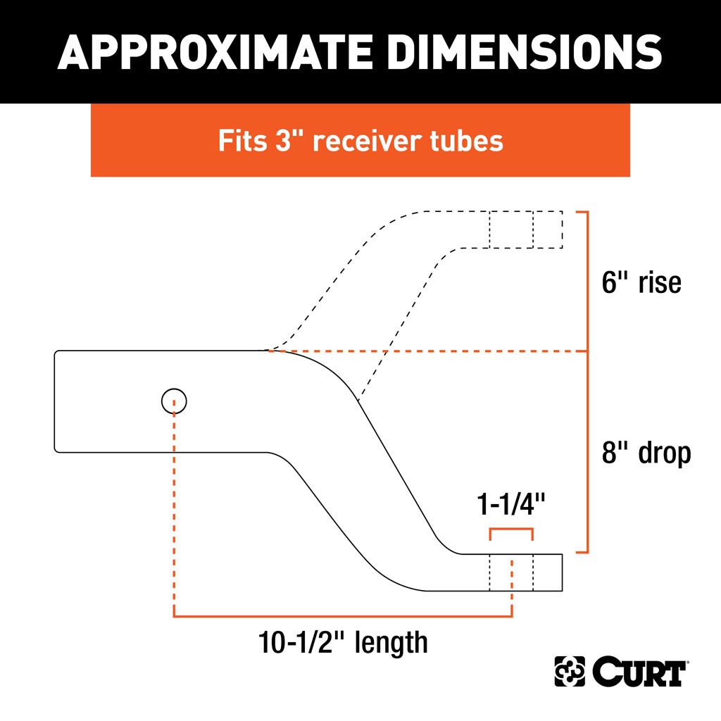 6" rise and 8" drop for use with larger, lifted trucks