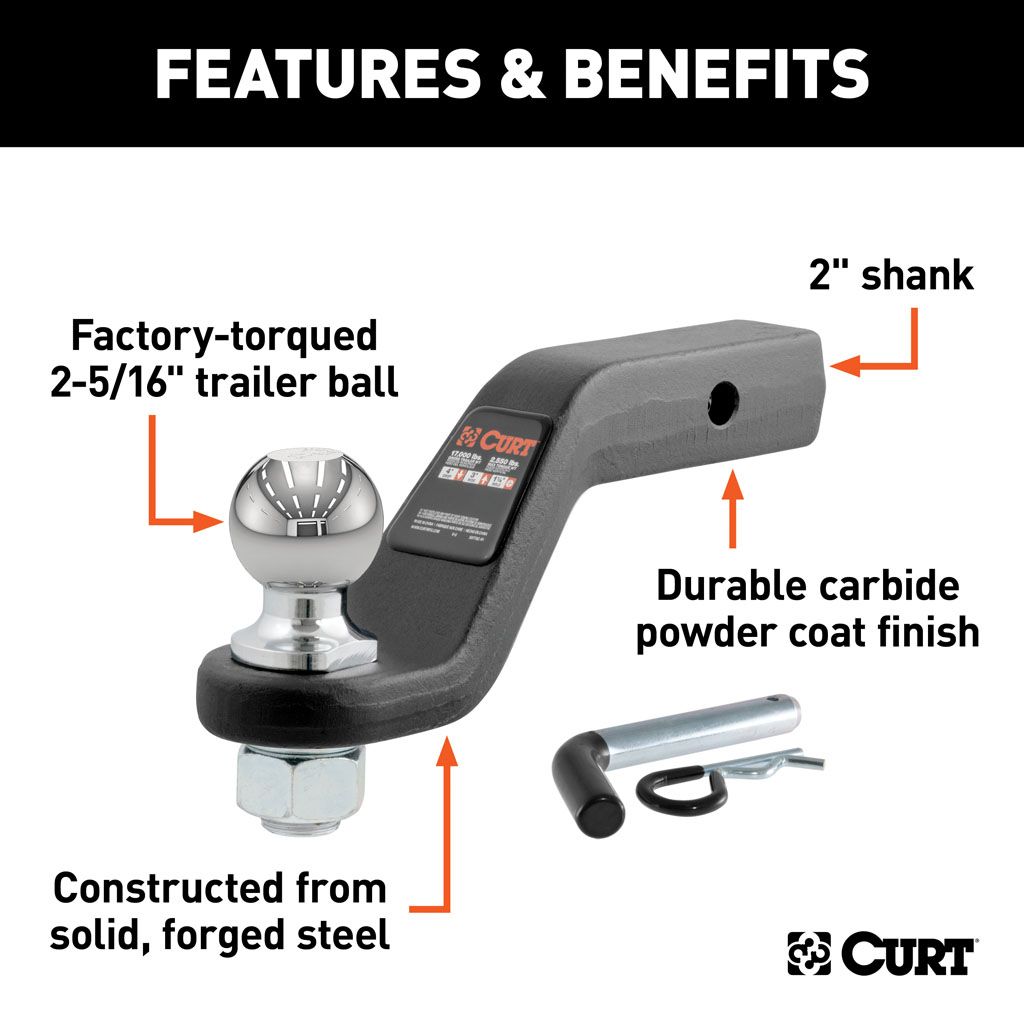Factory-torqued CURT trailer ball accepts a 2-5/16" coupler