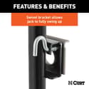 Swivel bracket allows jack to fully swing up and out of the way for travel