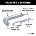 1/2" Hitch Pin with Groove (1-1/4" Receiver, Zinc) - 2140300000-000