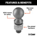 3" TRAILER BALL (2" X 3-1/4" SHANK, 30,000 LBS., RAW STEEL) - 40089