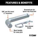 5/8" Hitch Pin with Groove (2" Receiver, Zinc, Packaged) - 72.4532