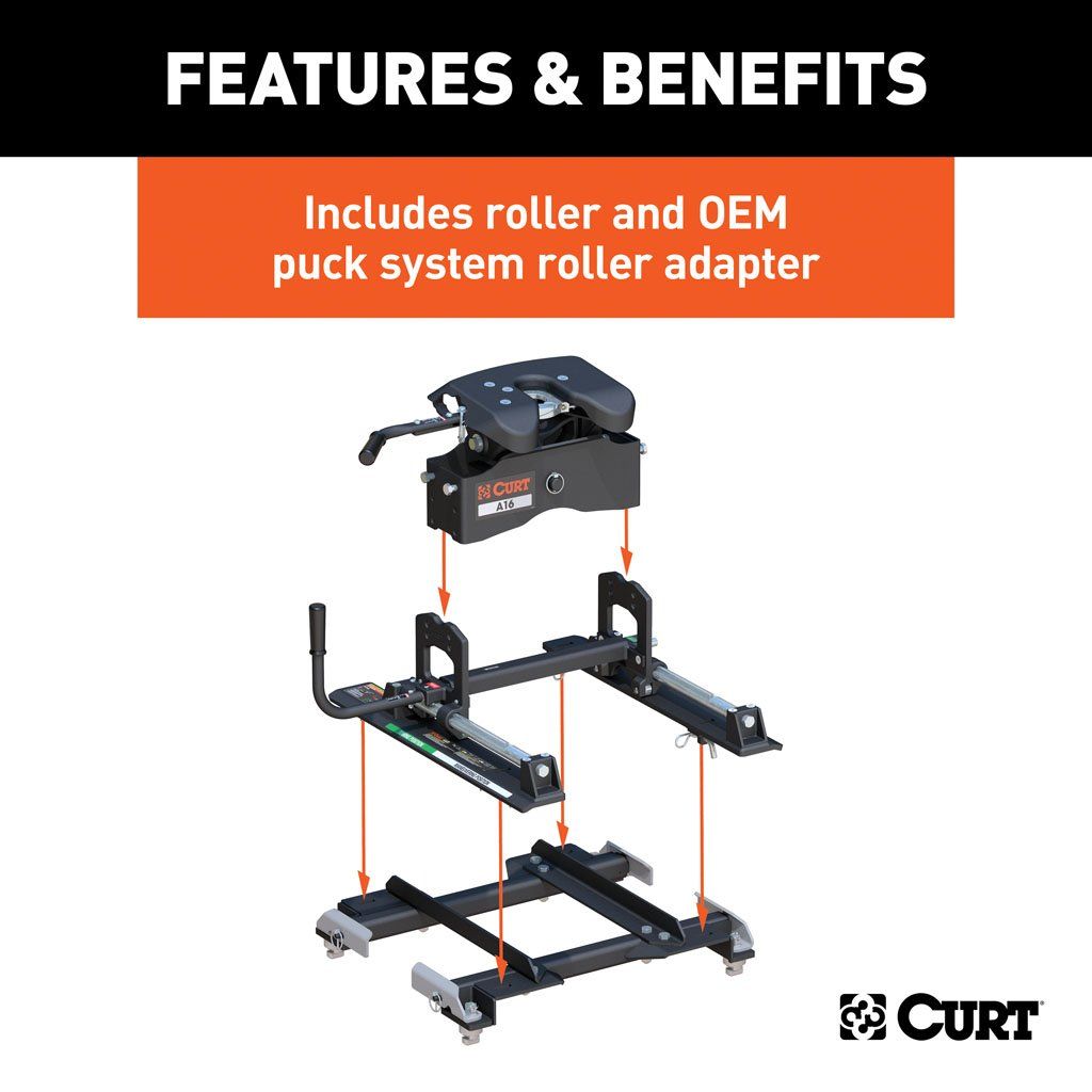 Includes A16 5th wheel hitch head #16520, R16 slider #16560 and GM puck system adapter #16023 (requires GM puck system for installation)