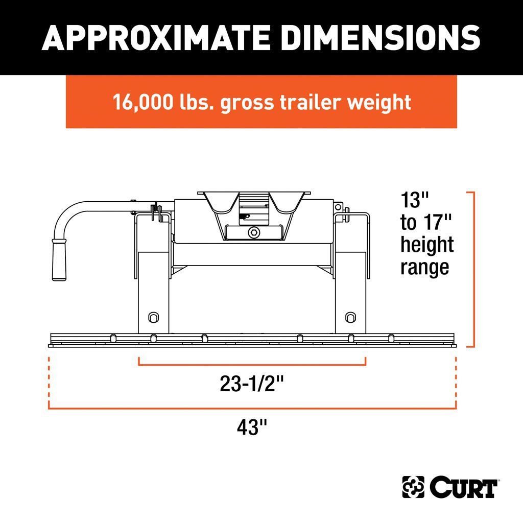 Includes E16 5th wheel hitch #16115, base rails #16200 and hardware