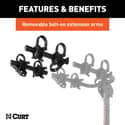 Removable bolt-on extension arms allow for two- or four-bike capacity