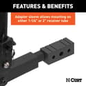 Adapter sleeve allows mounting on either 1-1/4" or 2" receiver tube