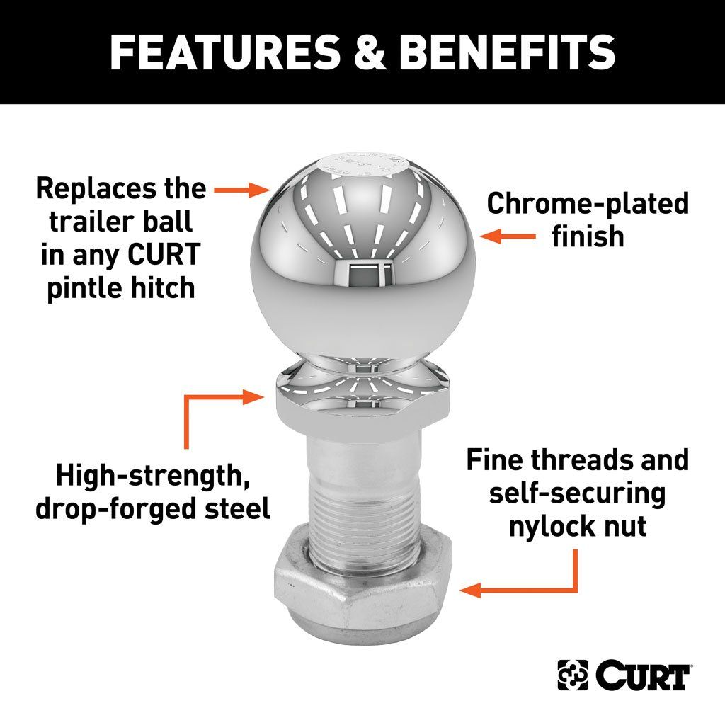 Replaces the trailer ball in any CURT ball & pintle combination
