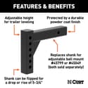 Mounts on trailer hitches with a 2" x 2" receiver tube opening
