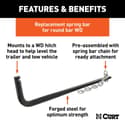 Mounts to a round bar WD hitch head to help level the trailer and tow vehicle