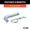 1/2" hitch pin fits any 1-1/4" x 1-1/4" receiver tube