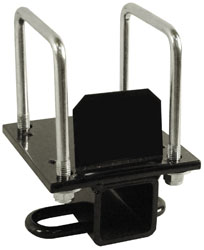 Universal Hitch - Powder coated black paint resists corrosion, 2" square receiver opening, one piece welded construction, included mounting hardware and u-bolts fits around square bumpers up to 4" wide.