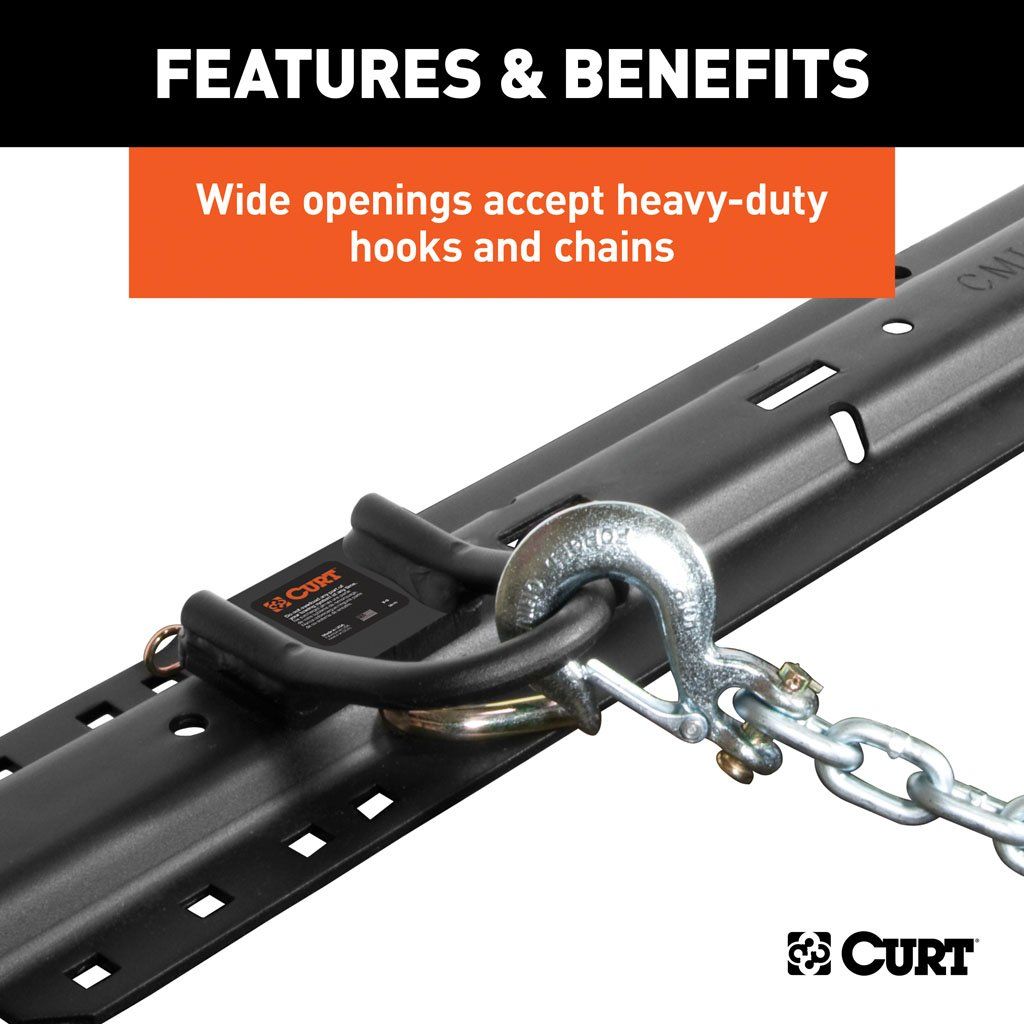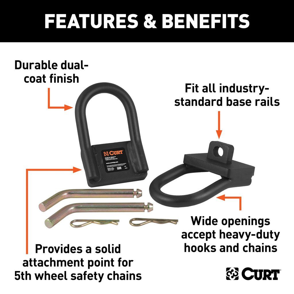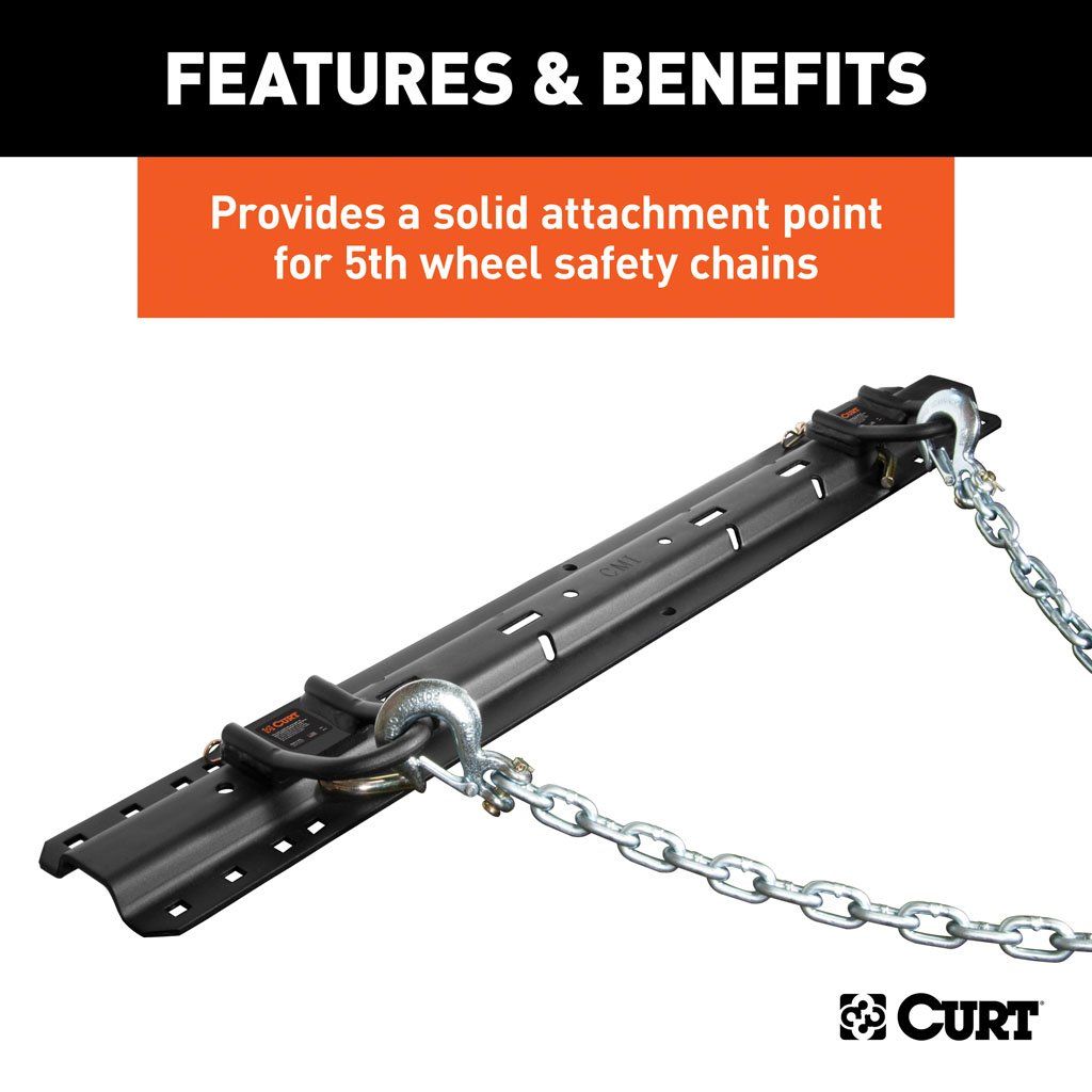 Provides a solid attachment point for 5th wheel safety chains in the truck bed