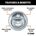1-1/8" x 1-5/8" Recessed Tie-Down Ring (1,000 lbs, Clear Zinc)