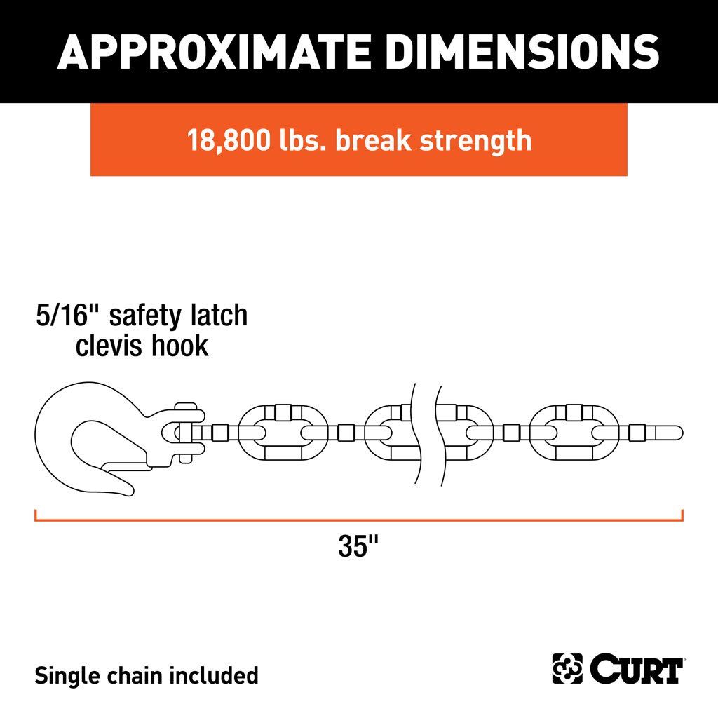 35" Safety Chain with 1 Clevis Hook (18,800 lbs, Yellow Zinc) - 72.2607