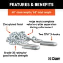 48" Safety Chain with 2 S-Hooks (5,000 lbs, Clear Zinc) - 72.2605