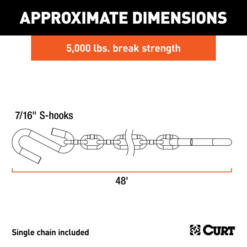 48" Safety Chain with 2 S-Hooks (5,000 lbs, Clear Zinc)