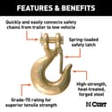Quickly and easily connects safety chains from trailer to tow vehicle
