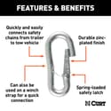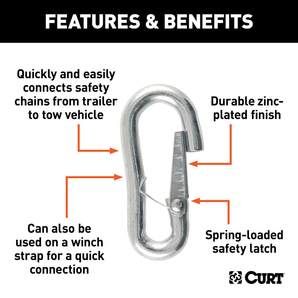 Quickly and easily connects safety chains from trailer to tow vehicle
