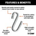 Quickly and easily connects safety chains from trailer to tow vehicle