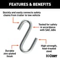Quickly and easily connects safety chains from trailer to tow vehicle