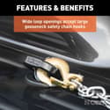 Wide loop openings accept large gooseneck safety chain hooks
