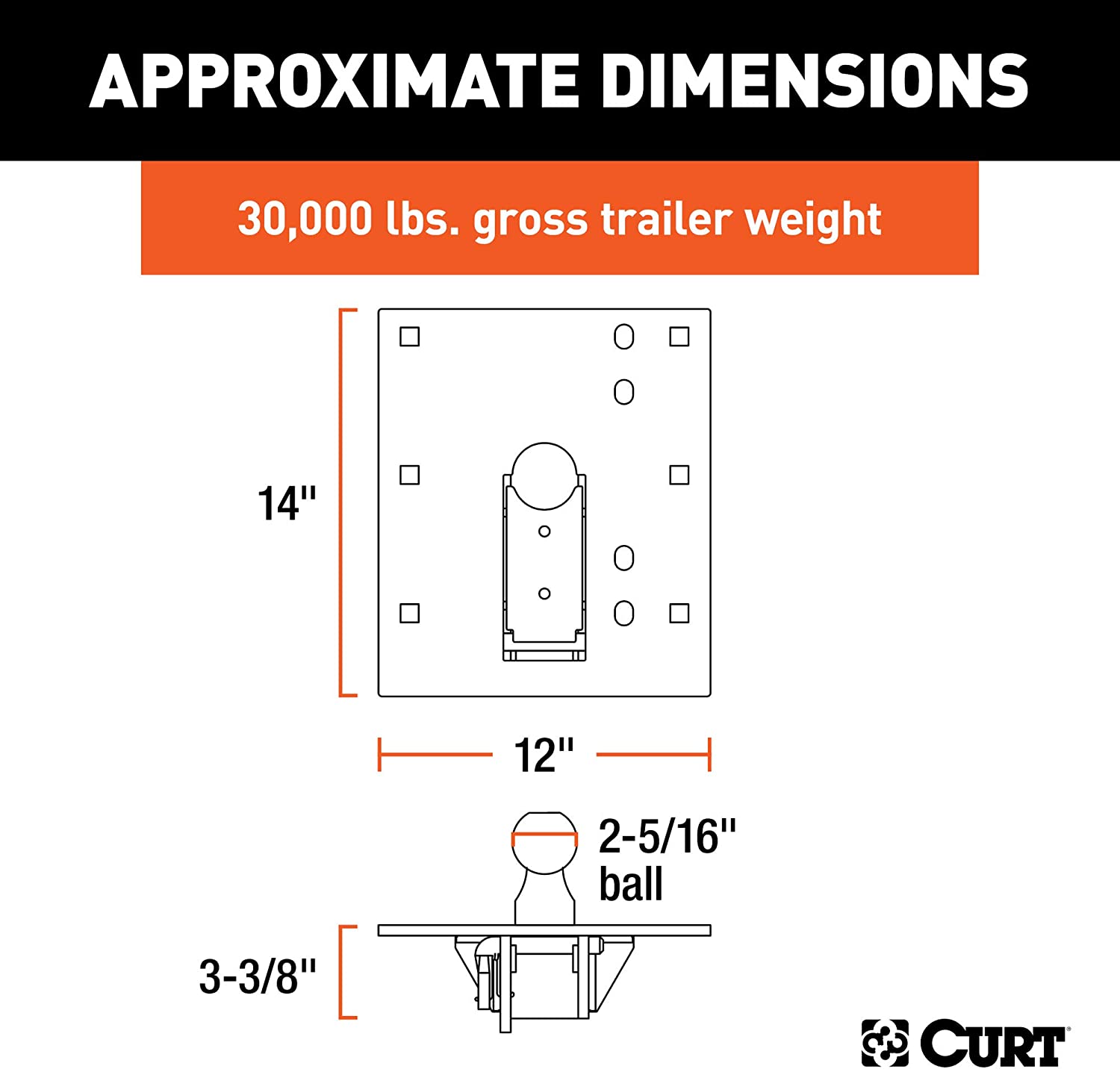 Chrome-plated 2-5/16" trailer ball fits all standard gooseneck trailers