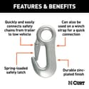Quickly and easily connects safety chains from trailer to tow vehicle