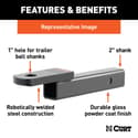 Fits trailer hitches with a 2" x 2" receiver tube opening