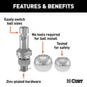 No tools, coins or pins required for trailer ball installation