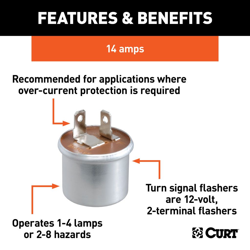 Turn signal flashers are 12-volt, 2-terminal flashers