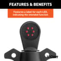 Features a label for each LED, indicating the intended function