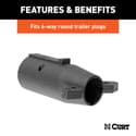 Adapts a 7-way RV blade vehicle socket to fit 6-way round trailer plugs