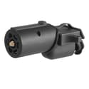 Adapts a 7-way RV blade vehicle socket to fit 5-way flat trailer plugs