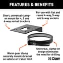 Short, universal clamp-on mount for 4, 5 and 6-way socket brackets