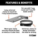 Long, universal clamp-on mount for 7-way socket brackets